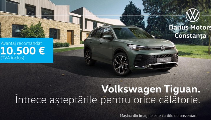 Tiguan – avantajul de preț de 10.500 € (TVA inclus) se referă la Tiguan Life PHEV, 1.5 TSI/ 204 CP, cu pachet Exclusive 4.650 € (TVA inclus), preț recomandat 44.527 € (TVA inclus) din care se scad: Oferta Lunii - 2.380 €, GoGreen - 3.650 €; Preț final recomandat 38.700 € (TVA inclus).
